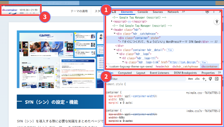 この機能を使うと、CSSのどの箇所を編集すればよいか、また編集した際にどのように表示が変化するかをリアルタイムで確認できるため、カスタマイズ作業が格段に効率的になります。