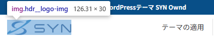 ロゴ画像を指定して調べると、上画像のように画像サイズが表示されます。