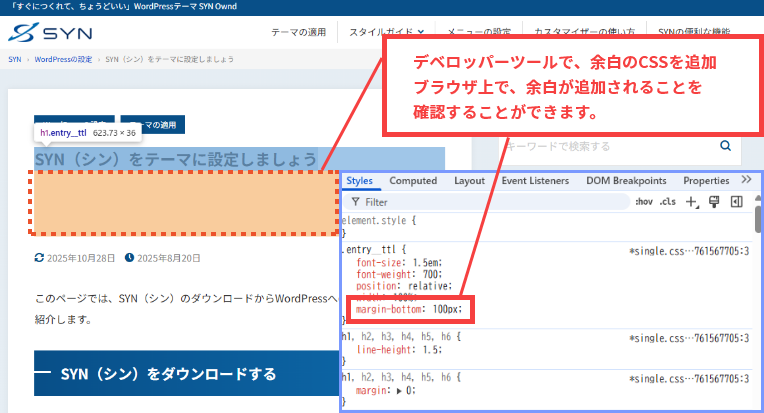 例として、記事ページの見出し下にマージンを追加しています。