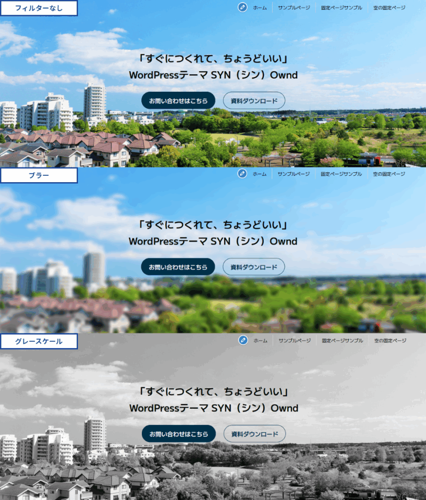 画像の加工をする場合(フィルタを適用)は、以下の設定から調整可能です。