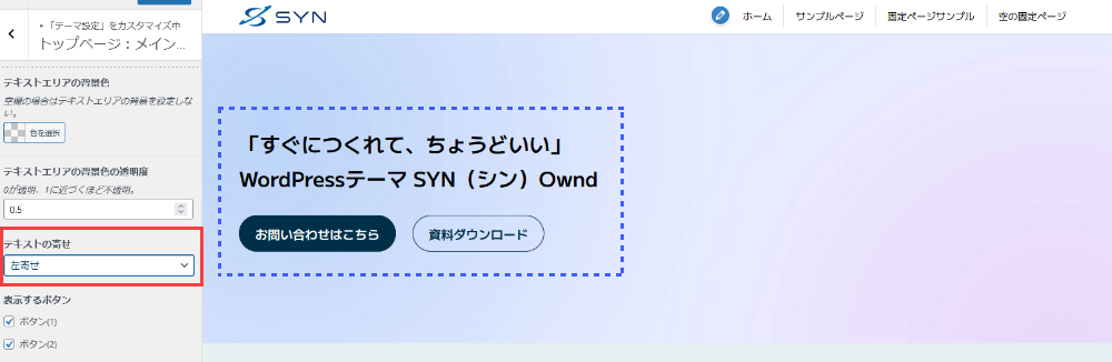 カスタマイズ > テーマ設定 > トップページ:メインビジュアル、から設定に進みます。
