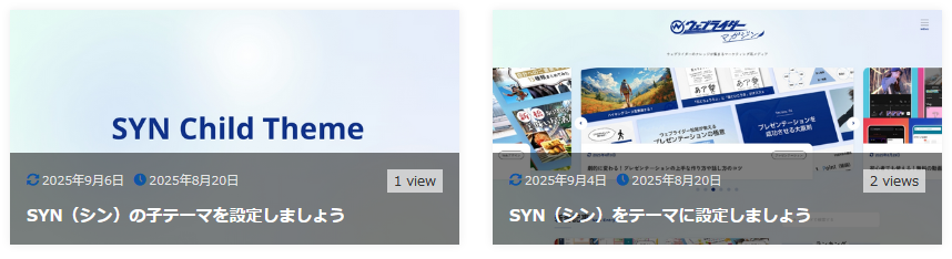 サムネイル型は、アイキャッチ画像の上に投稿情報を重ねて表示するリスト形式です。