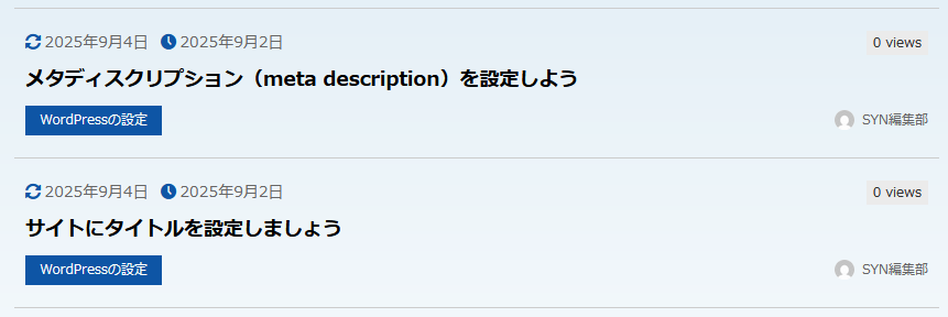 リスト型は、アイキャッチ画像と投稿情報が左右に並ぶタイプの一覧表示です。