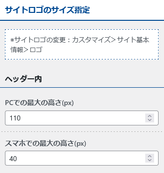 PC表示時やスマートフォン表示時のロゴの高さを調整します。
