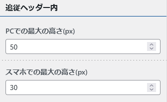 追従ヘッダー表示時のロゴの高さも設定可能です。