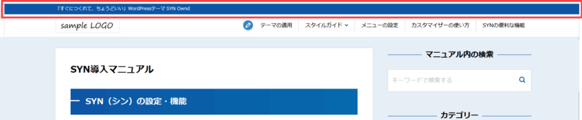 ヘッダーの下部に「お知らせ」エリアを設置します。
