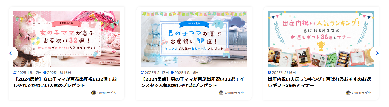 「フッター上部エリア」はウィジェットが3つ以上入るとカルーセル表示になります。