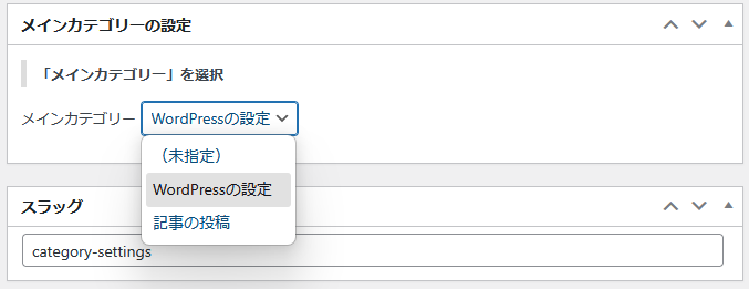 記事投稿画面の下部にある「メインカテゴリーの設定」からカテゴリーを選択します。